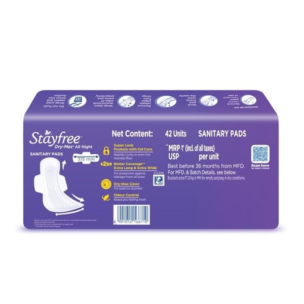 Stayfree Dry Max XXL | 42 Pads | All Night XXL Dry Cover Sanitary Pads for Women