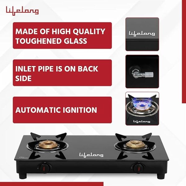 Lifelong LLGS602 Glass Automatic Gas Stove (2 Burners)