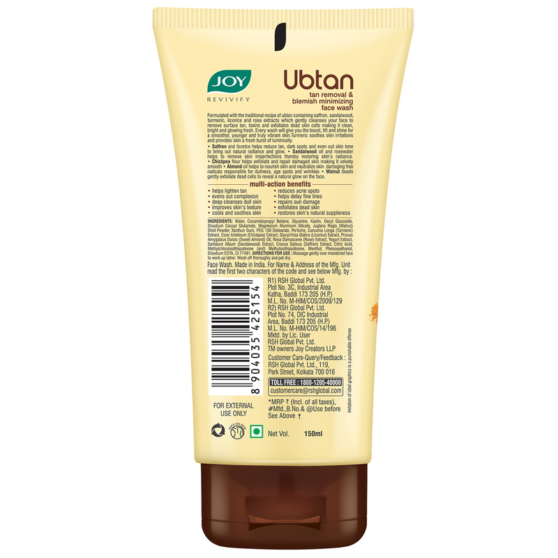 Be the first to review “Joy Ubtan Tan Removal Face Wash 150 ml” Cancel reply